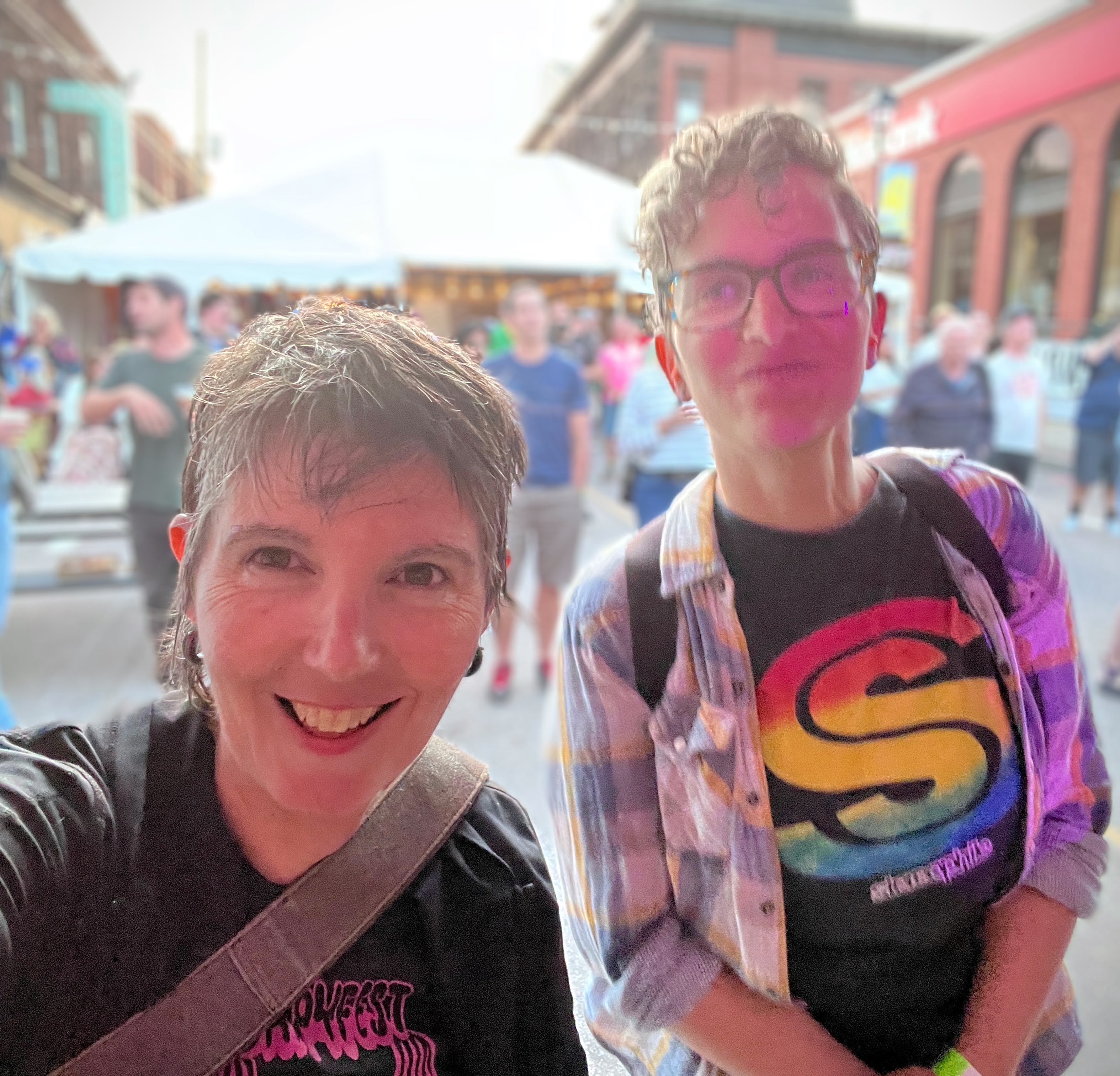 We're also goofy, curious, surprising people, who, on a break, may share with you tales from a camping adventure with dogs, of an uncanny tarot spread, of the feeling of taking the mic at a large demonstration, or of bringing a record into a mix that brings everyone onto the floor.